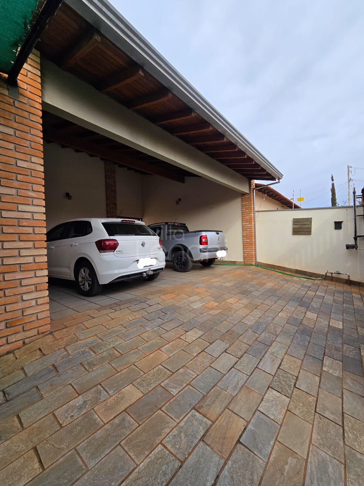 Garagem coberta para dois veículos grandes.