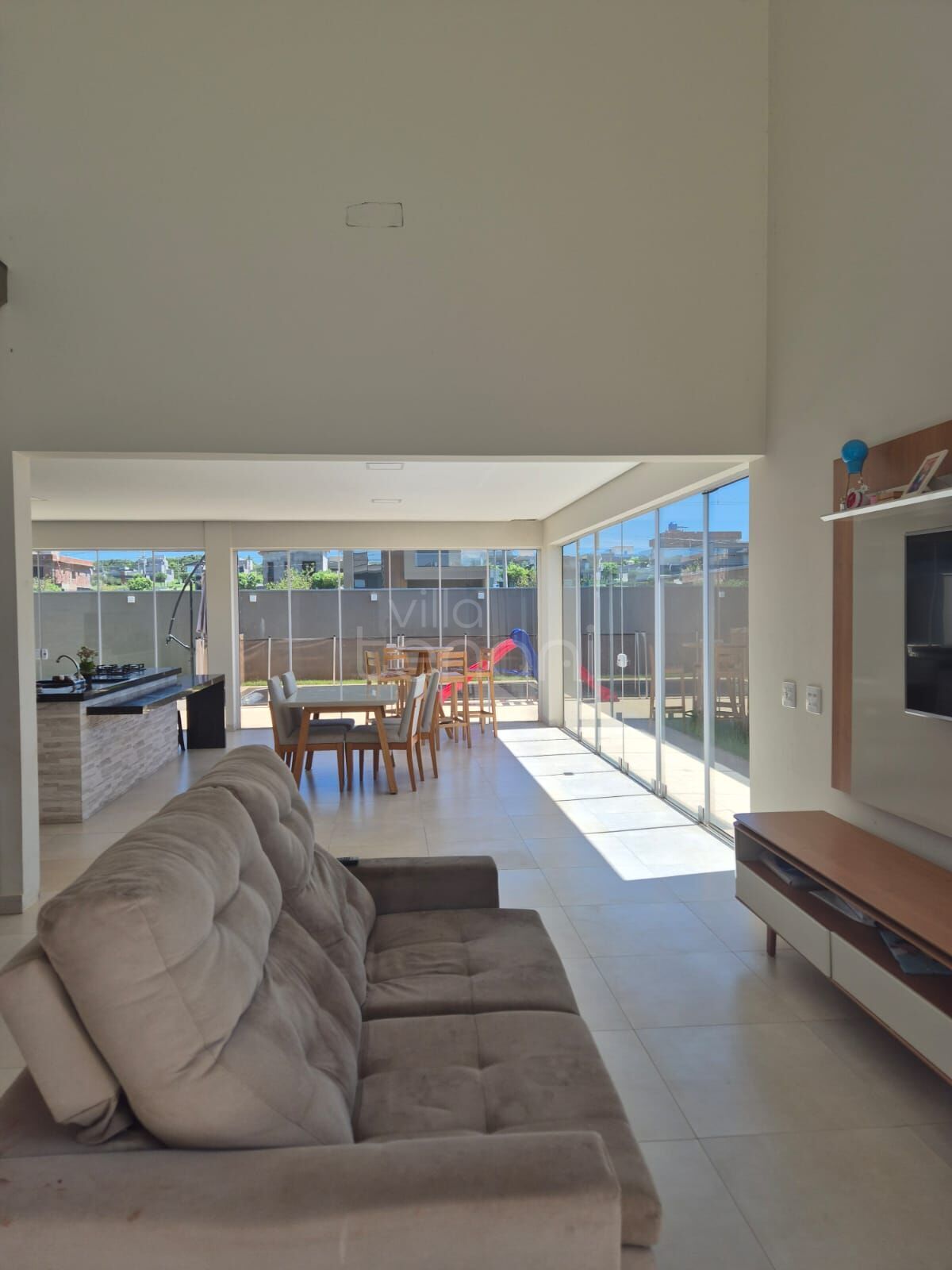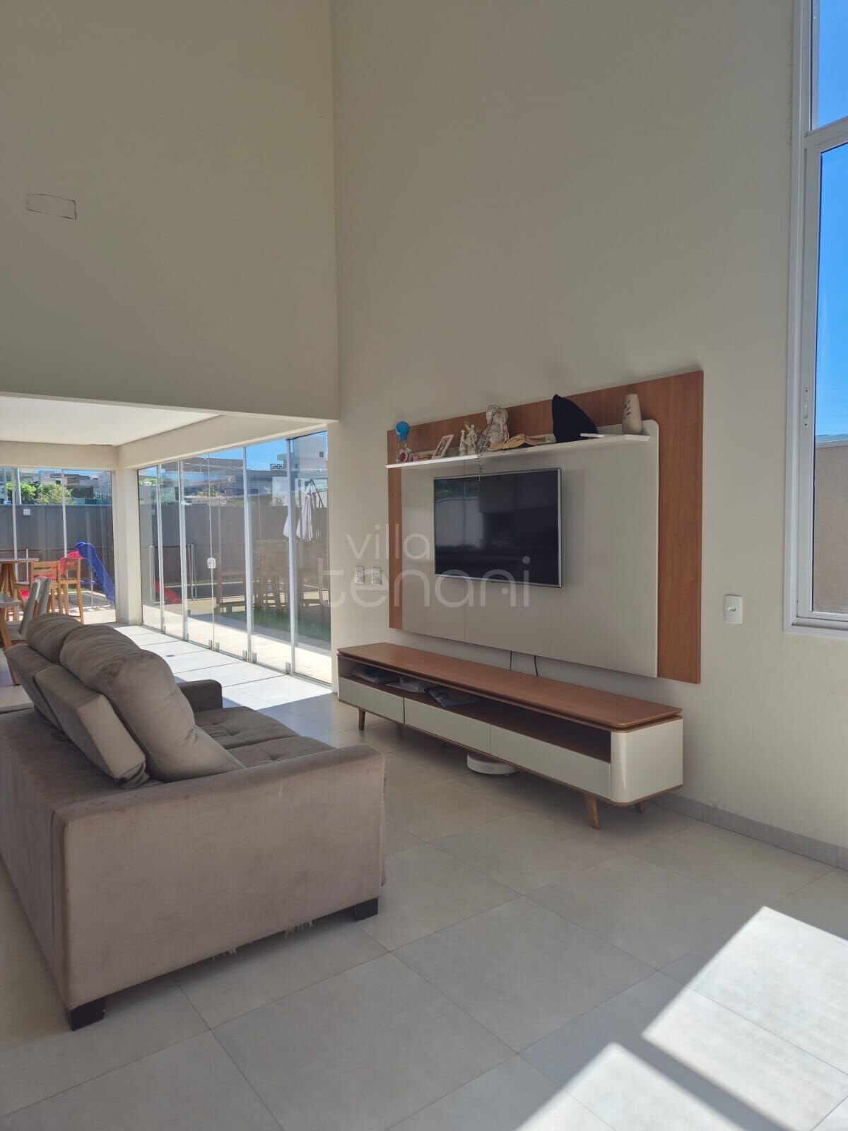 - Sala de TV, pé direito Alto com cortina